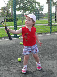Ana Maria got to play with Tio Jose one more time while we were visiting Florida. She loves it! It was so hot outside, and her racquet was way too big but she didn't care. She doesn't mind sweating and working hard. I know there are a lot of pictures but I just couldn't pick a couple :) Enjoy!