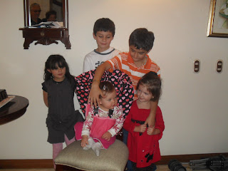 Eduardo's sister who lives in Colombia, Maria Cristina, is still very close to many of Eduardo's cousins on his mothers side of the family. This particular night we went to a birthday party for the son of Eduardo's cousin. There were a lot of kids there so Ana Maria got to play with fun toys and Kathryn just crawled around everywhere. The food and cake was delicious!